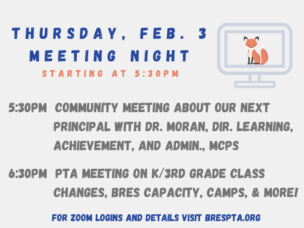 The PTA Meeting is on Thursday, February 3 at 6:30-8pm